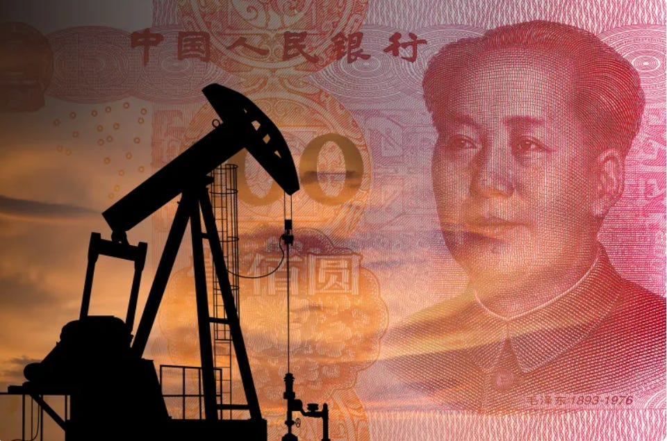 رصد خبراء اقتصاديون تسارع التحوّل نحو اليوان في تسوية عقود النفط الدولية في أعقاب الحرب على إيران التي تهدد بتقليص هيمنة البترودولار في تجارة الطاقة العالمية، و تشير تقديرات دويتشه بنك إلى أن إيران ودولاً حليفة باتت تطلب اليوان بديلاً للدولار في صفقات النفط، مما يمنح العملة الصينية زخماً غير مسبوق.